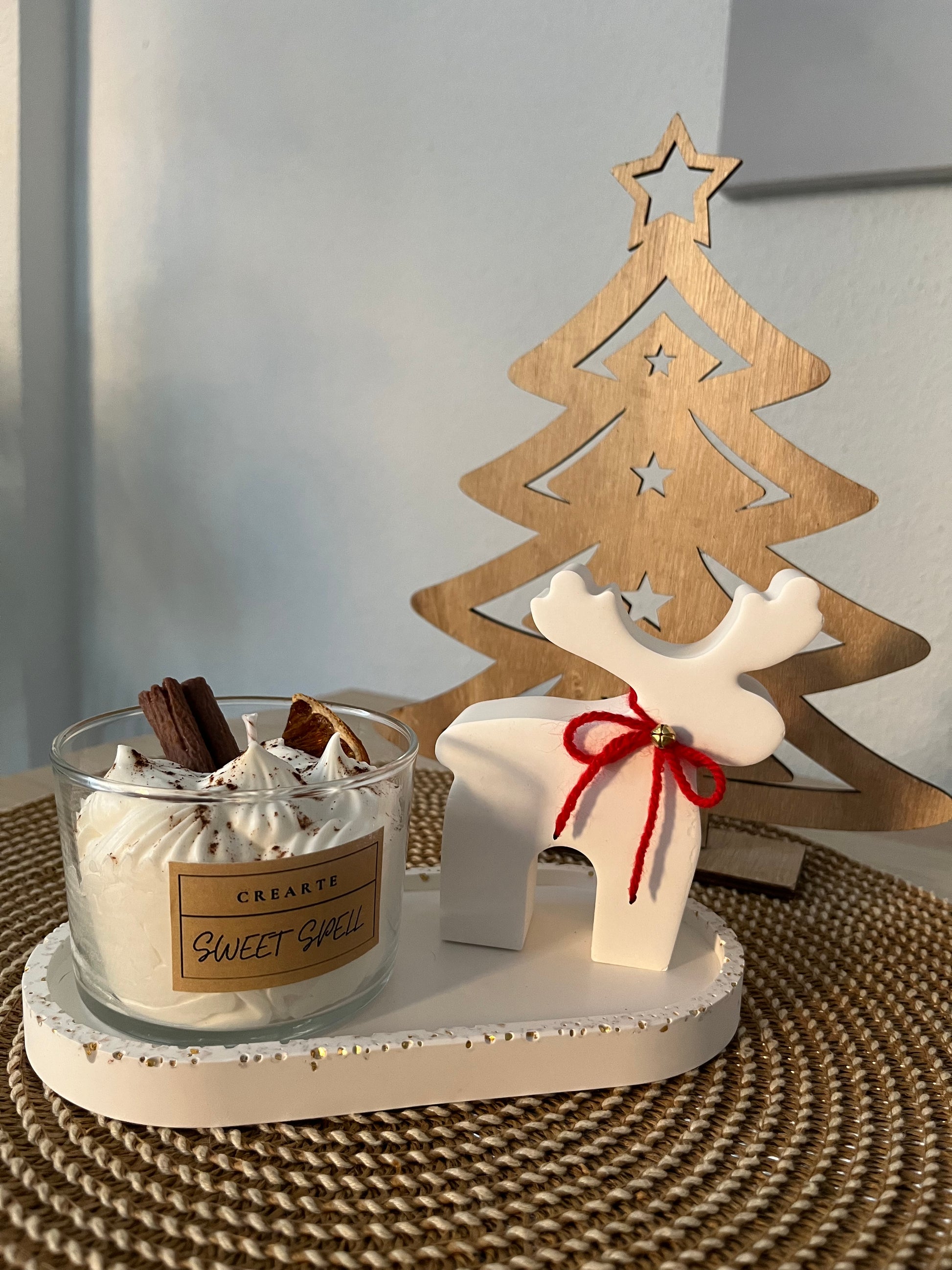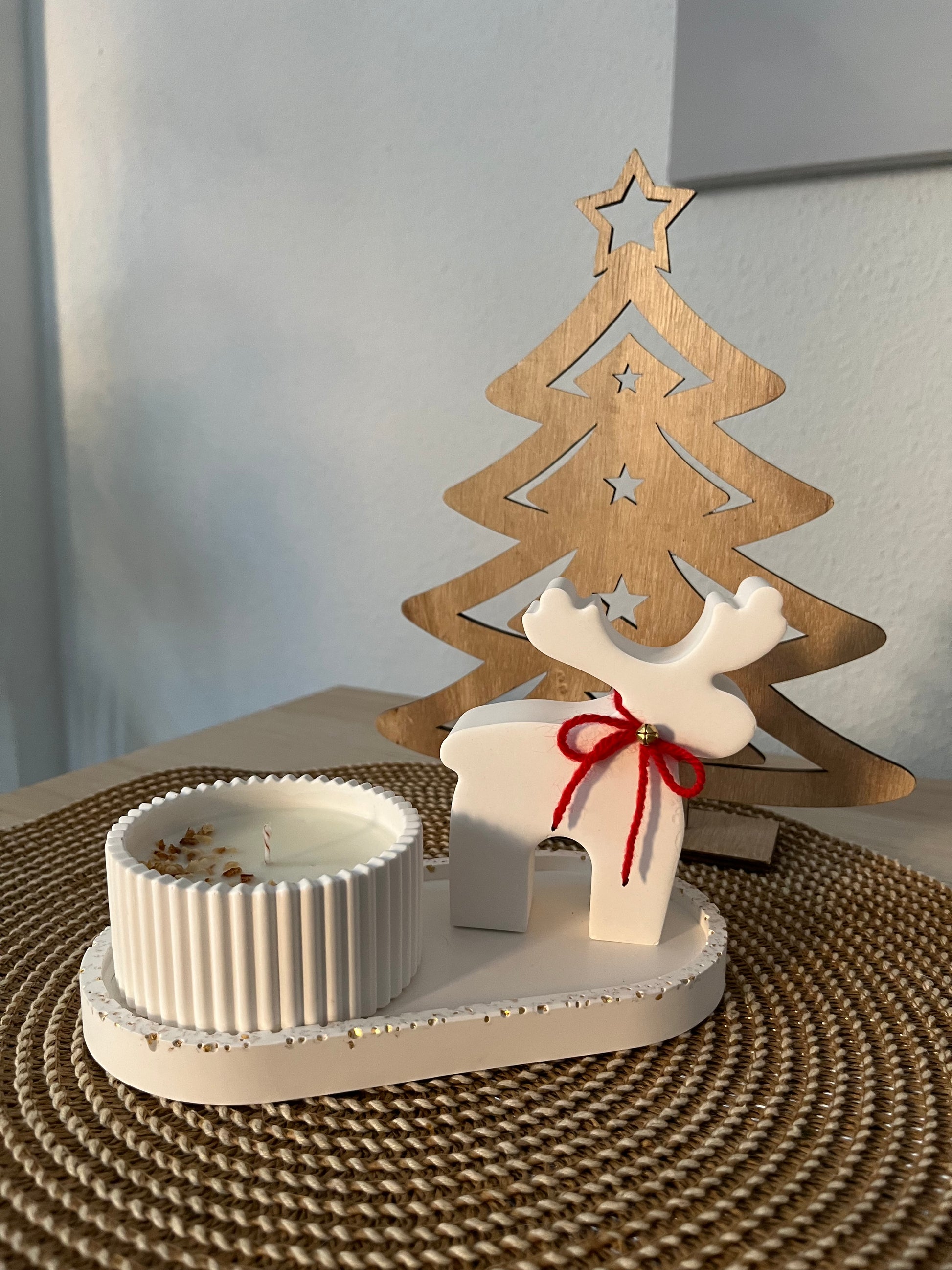 Cada pack incluye una bandeja decorativa y un adorable reno de resina artesanal 🦌, fabricado con resina ecológica para un toque sostenible y único 🌱.