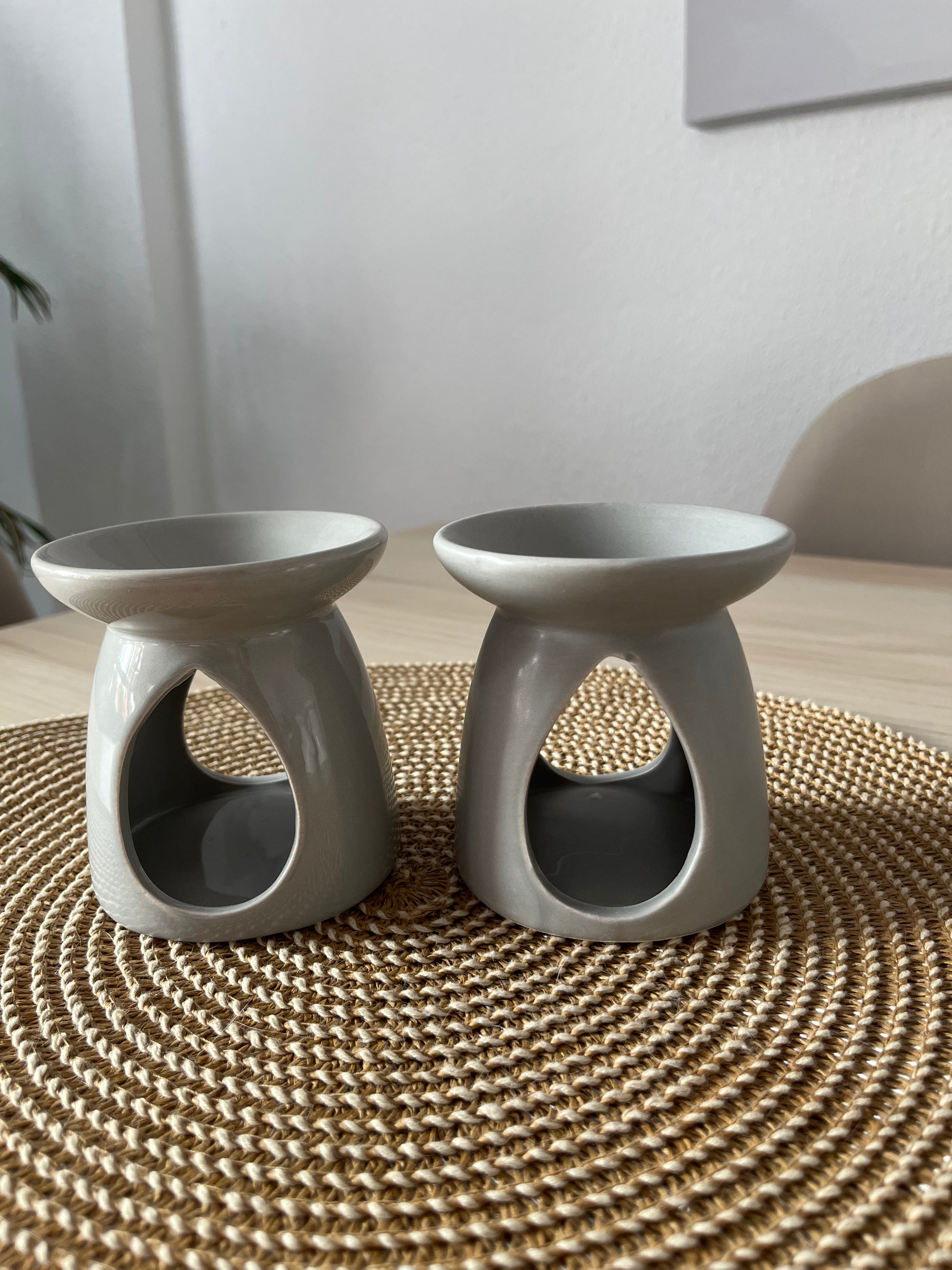 Quemador gota gris, un quemador ideal para derretir ceras aromáticas. Es de cerámica y es perfecto para crear un ambiente relajante en tu hogar.