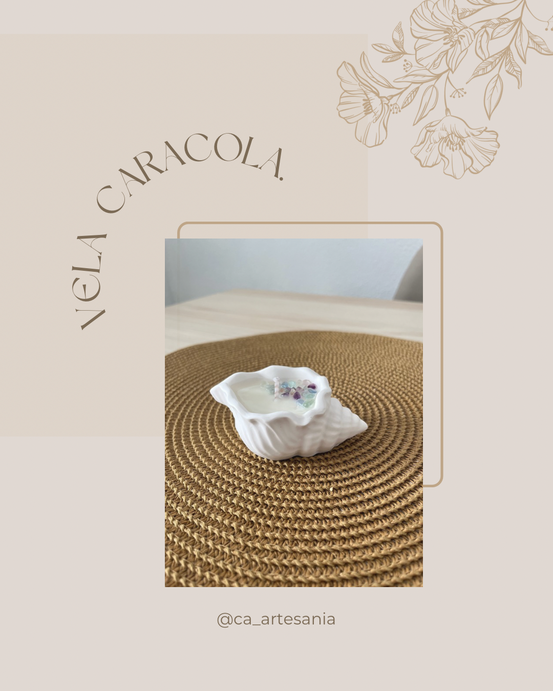 La Vela Caracola enamora por su original recipiente en forma de concha, elaborado artesanalmente con resina ecológicay relleno de cera de soja 100% natural. Su diseño inspirado en el mar aporta un aire costero y relajante a cualquier espacio.