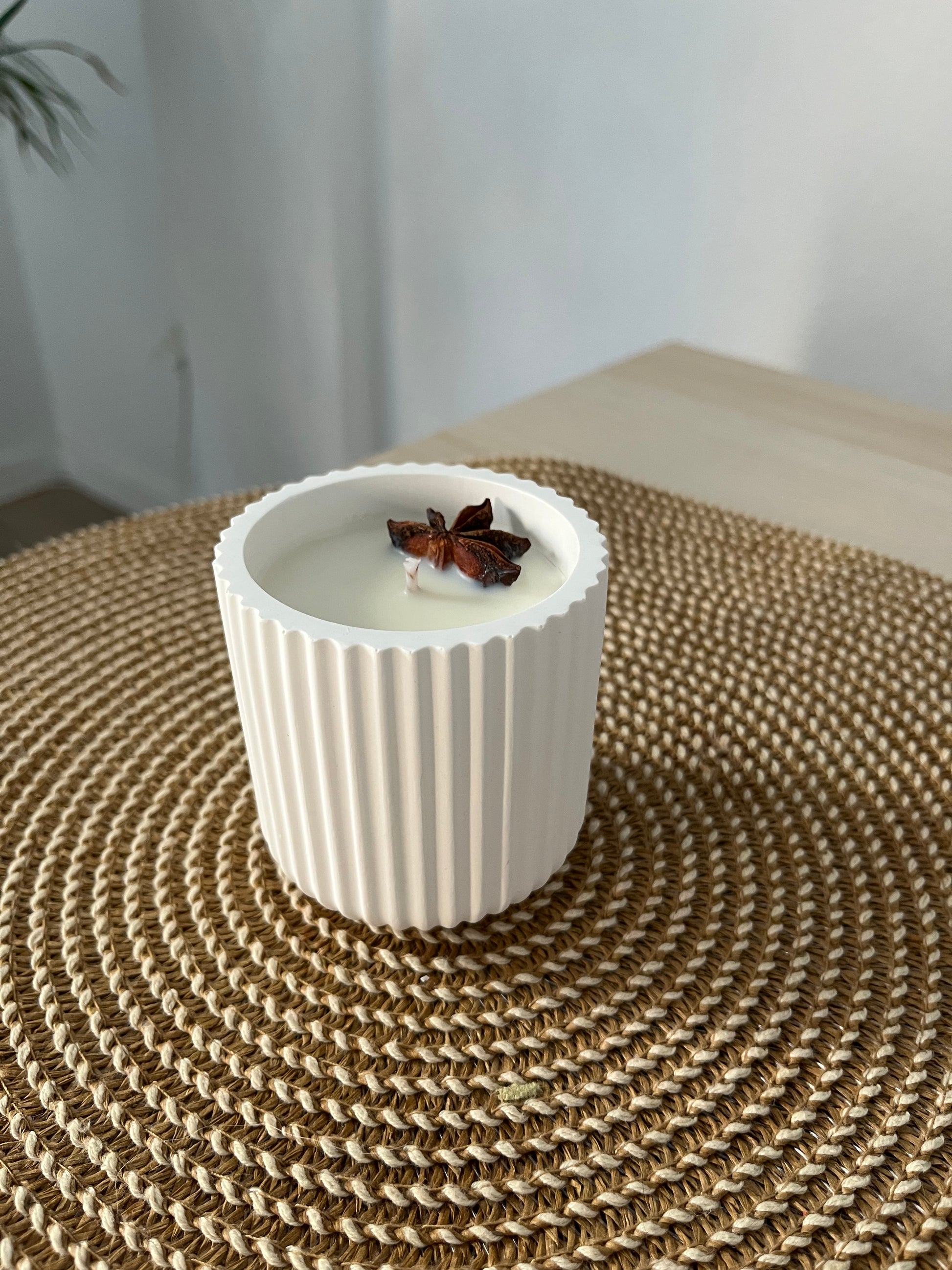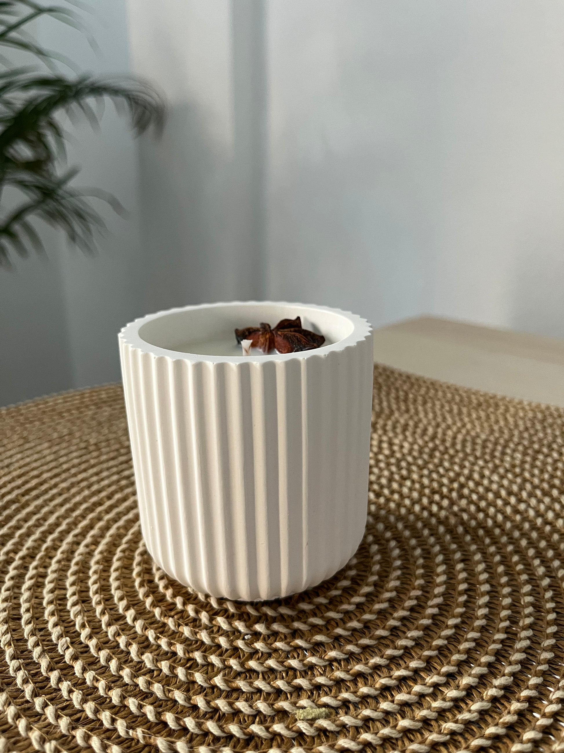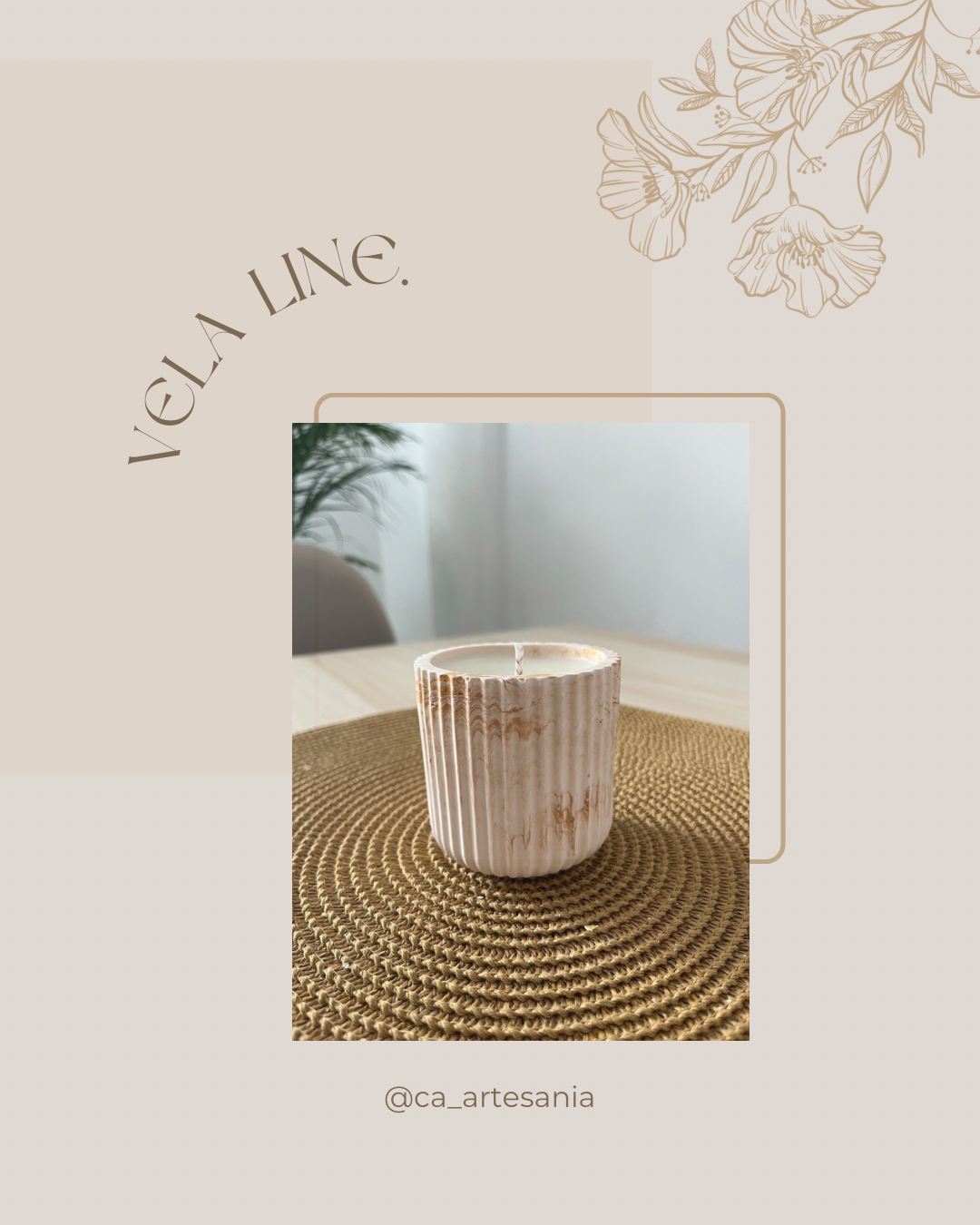 La Vela Line destaca por su diseño elegante y texturizado, elaborado artesanalmente con resina ecológica y cera de soja 100% natural. Su forma cilíndrica con líneas verticales aporta un estilo moderno y minimalista que se adapta a cualquier espacio.