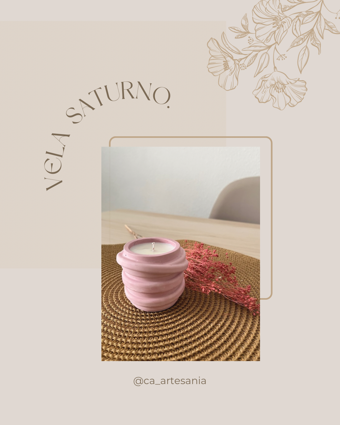 La Vela Saturno cautiva con su diseño orgánico y curvado, elaborado artesanalmente en resina ecológica y relleno de cera de soja 100% natural. Su forma inspirada en anillos planetarios añade un toque artístico y contemporáneo que realza cualquier rincón.